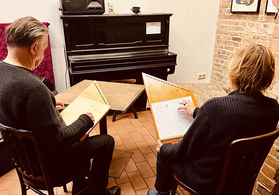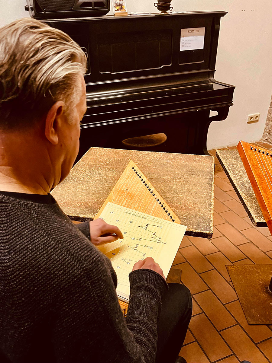 10 Veeh-Harfen sind bereitgestellt. Notenkenntnisse oder musikalische Erfahrung sind nicht erforderlich. Es ist sehr leicht, dieses Instrument zu erlernen.